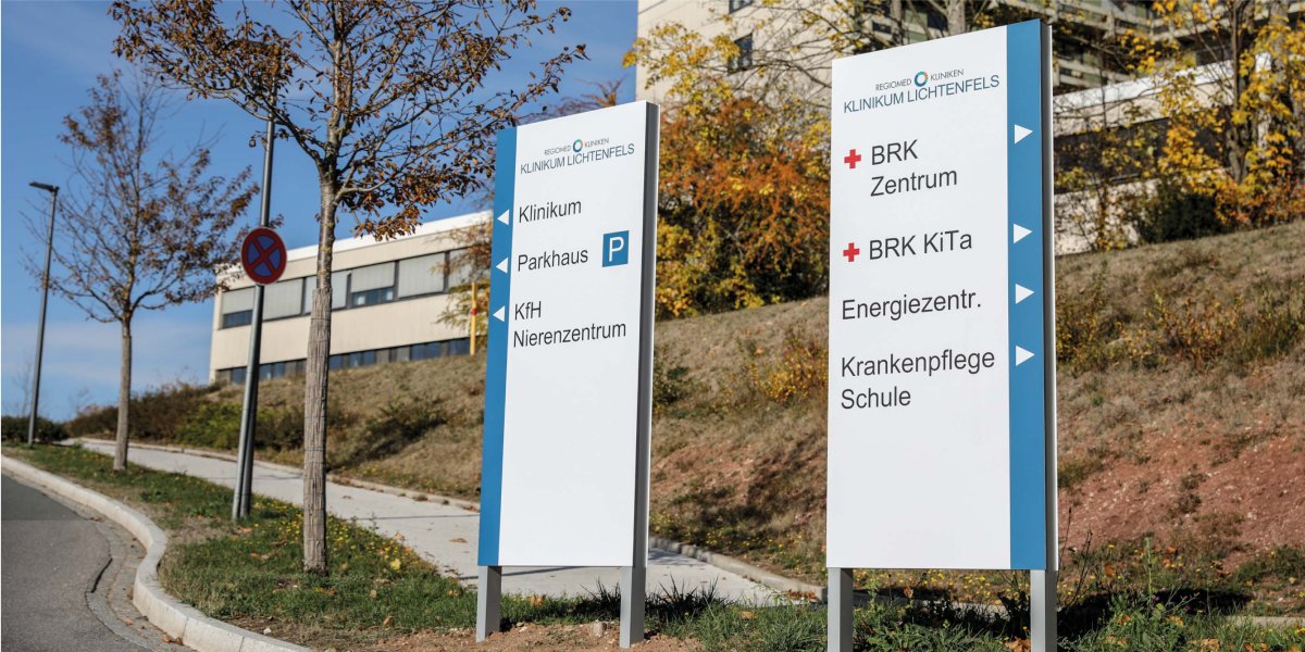 Im Sana Klinikum Lichtenfels wurde ein vollständiges Wegeleitsystem umgesetzt, das Patienten, Besuchern und Personal eine klare Orientierung innerhalb des Klinikgeländes ermöglicht.