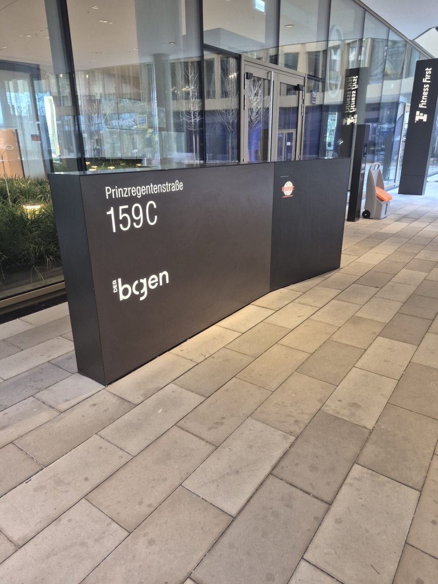 Mit dem Projekt Der Bogen München wurde ein modernes Büro- und Gewerbeensemble realisiert, das eine klare und funktionale Besucherführung erfordert.